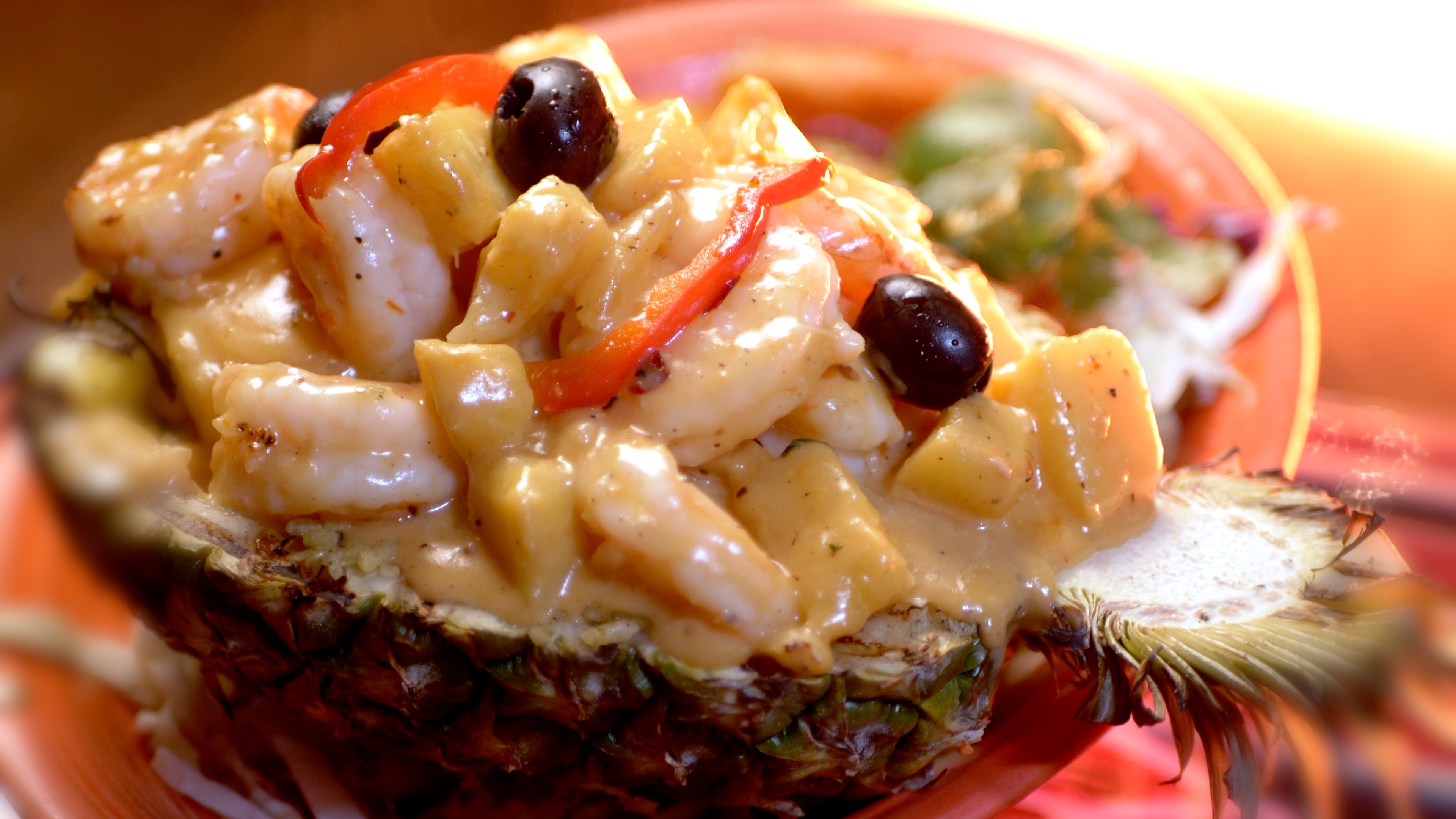 Like Our SAN GERMAN, First Place Award Winner at International Ensenada Seafood Competition. Seasoned Pacific wild shrimp sauteed with butter, brandy, pineapple then combined with a creamy wine sauce over a bed of arroz amarillo. Served in a pineapple half with achiote seasoned sauteed vegetables.
